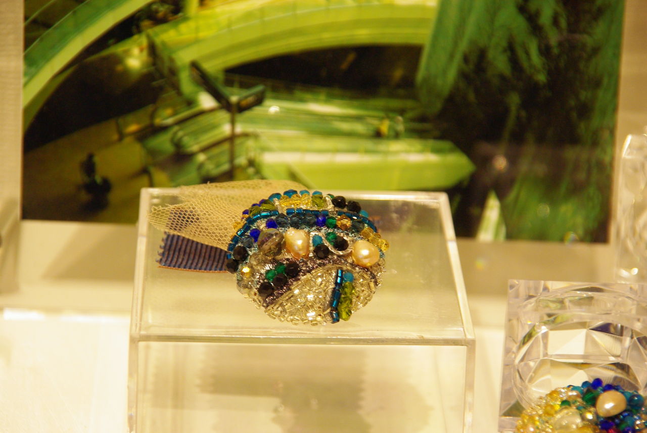 May 21, 2013 羽田空港ターミナル Collaboration展での作品こぼれ話 写真からのインスプレーションで制作するコンセプトの展覧会でした 羽田空港ターミナル…この写真に惹かれて…このブローチ…螺旋に広がる空間とその中心に向かっていくエスカレーターを表現しました エスカレーターに乗る2人… その2人を数字の2で登場させてみました。写真の中での2人の存在は無くてはならないと…思ったからそして+遊び心もあり 数字の2は銅線を使用 ラジオペンチで形と模様を作っています。¥15000 (淡水パール・スワロスキー・チェコビーズ・アンティークビーズ等) 売約済